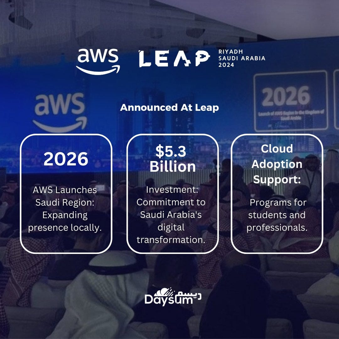 أعلنت امازون في مؤتمر ليب 2024 عن خطة لاستثمار أكثر من 5.3 مليار دولار! في السعودية لإنشاء منطقة سحابية فائقة السعة بحلول عام 2026